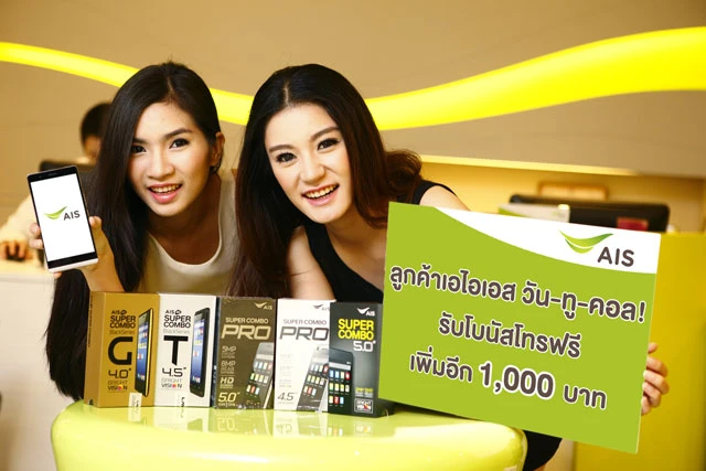 ซื้อ AIS Super Combo 5 รุ่นสุดฮิต รับ Super Bonus ค่าโทรฟรีเพิ่มอีก 1,000 บาท
