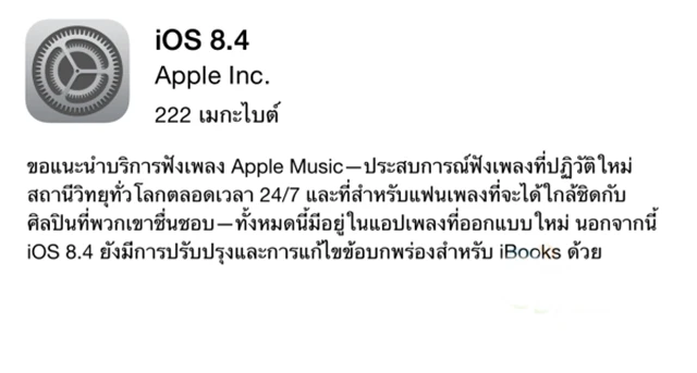 นอกจากนี้ ยังมีบริการสตรีมมิ่งออนไลน์อย่าง Apple Music ซึ่งทาง Apple เองได้เปิดให้ใช้เป็นระยะเวลา 3 เดือนโดยไม่คิดค่าใช้จ่าย แต่หลังจากพ้นช่วงทดลอง 3 เดือนไปแล้วก็จะคิดค่าบริการเป็นรายเดือนต่อไป แต่ถ้าหากเราไม่ต้องการก็สามารถยกเลิกได้ทันที คงต้องรอดูกันต่อไปนะคะว่าสัดส่วนของผู้ใช้ในการอัพเดต IOS 8.4 นั้นจะเพิ่มขึ้นมากน้อยแค่ไหน ซึ่งอาจจะทำให้คู่แข่งอย่าง Spotify, Google Play Music หวั่นๆ อยู่ไม่น้อยเมื่อเห็นการรุกขยายตลาดรวดเร็วแบบนี้ของทาง Apple