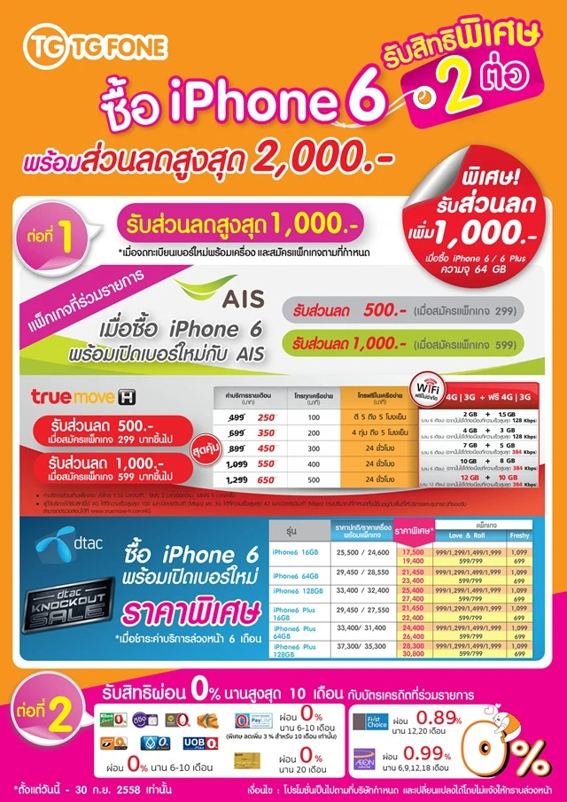 ซื้อ iPhone 6 ที่ร้าน TG FONE รับสิทธิพิเศษ 2 ต่อ พร้อมส่วนลดสูงสุด 2,000 บาท