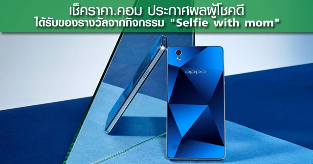 หลังจากที่ทางเว็บไซด์เช็คราคา.คอม ได้จัดกิจกรรม "Selfie with mom" การถ่ายรูปเซลฟี่คู่กับแม่ พร้อมบอกความในใจโดนๆ เพื่อชิงโทรศัพท์มือถือ "OPPO Mirror 5" และ Voucher Central ไปเมื่อช่วงเทศกาลวันแม่แห่งชาติที่ผ่านมา ซึ่งก็ได้รับการตอบรับเป็นอย่างดีจนมีผู้เข้าร่วมกิจกรรมอย่างมากมาย ในวันนี้ 25 สิงหาคม พ.ศ. 2558 ก็ถึงเวลาที่เราจะมาประกาศผู้โชคดีที่ทำทุกอย่างตรงตามกติกาและเงื่อนไขกันแล้ว (ดูรายละเอียดกติกา และเงื่อนไขได้ที่นี่)
