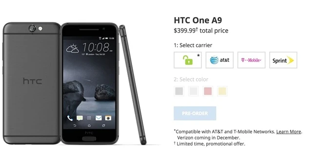 หลังจากที่ทาง HTC ได้เปิดตัว HTC One A9 อย่างเป็นทางการและได้ตั้งราคา Pre-order ในสหรัฐอเมริกาไว้ที่เดียวในราคา 399$ หรือประมาณ 15,000 บาท และจะวางจำหน่ายในช่วงต้นเดือนพฤศจิกายนนี้ ล่าสุดทาง HTC ได้เปิดเผยข้อมูลแล้วว่าราคา 399$ นั้นเป็นแค่ราคาโปรโมชั่นในระยะสั้นๆ ของสหรัฐอเมริกาเท่านั้นค่ะ ซึ่งราคาจริงๆ ของ HTC One A9 ที่จะวางจำหน่ายนั้นคือ 499$ หรือประมาณ 17,000 บาท