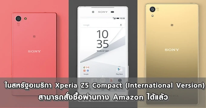 ในสหรัฐอเมริกา Xperia Z5 Compact (International Version) สามารถสั่งซื้อผ่านทาง Amazon ได้แล้ว