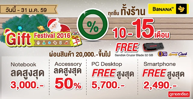 Gift Festival 2016 สุขแทนใจส่งท้ายปีที่บานาน่าไอที ทั่วประเทศ ตั้งแต่วันนี้ - 31 ม.ค. 2559
