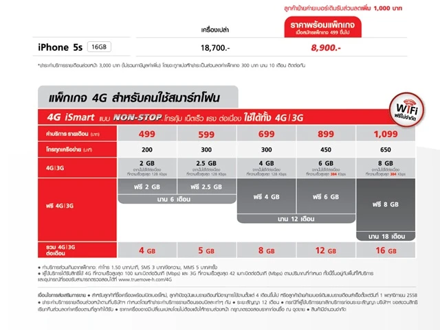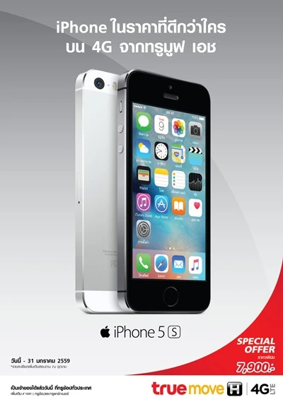 ทรูมูฟ เอช จัดโปรโมชั่นเอาใจ สำหรับผู้ที่มองหาสมาร์ทโฟนดีๆ สักเครื่องที่ราคาไม่เกินหมื่นด้วยการลดราคา iPhone 5S ความจุ 16 GB เหลือเพียง 7,900 บาทเท่านั้น (จากราคาปกติ 18,700 บาท) โดยผู้ซื้อต้องสมัครแพ็คเกจรายเดือนโปร 4G เริ่มต้นที่ 499 บาท และจะต้องจ่ายค่ารายเดือนล่วงหน้า 3,000 บาท (ไม่รวมภาษีฯ) แต่สำหรับลูกค้าที่ทำการย้ายค่ายเบอร์เดิม รับส่วนลดเพิ่มไปเลยอีก 1,000 บาท เหลือเพียง 7,900 บาทเท่านั้น