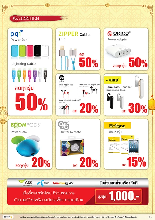 - Gadget และสินค้า Accessories ลดสูงสุด 50% อาทิ แบตเตอรี่สำรอง pqi, สายเคเบิ้ล Zipper 2 in 1
