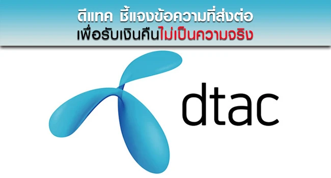 ดีแทค ชี้แจงข้อความที่ส่งต่อ เพื่อรับเงินคืนไม่เป็นความจริง