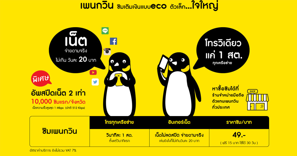 ผู้สนใจ "ซิมเพนกวิน" สามารถติดต่อขอรายละเอียดจากคอลเซ็นเตอร์หมายเลข 02-021-0144 ตลอด 24 ชั่วโมง หรือที่ www.penguinsim.com