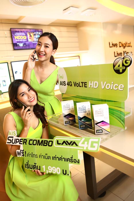 "เอไอเอส" ผู้นำตัวจริงด้านเครือข่ายดิจิทัลของประเทศ คุณภาพอันดับ 1 พร้อม 4G ครอบคลุม 77 จังหวัด ทั่วไทย เปิดตัว "LAVA 4G VoLTE" 3 รุ่น สมาร์ทโฟน 4G ที่ใครก็เป็นเจ้าของได้ พร้อมเทคโนโลยีล้ำหน้า 4G VoLTE ที่ให้คุณภาพเสียงคมชัดระดับ HD ลดเสียงรบกวน และโทรติดเร็ว ขยายประโยชน์สู่ประชาชนทั่วประเทศ ในราคาเริ่มต้นที่ 1,990 บาท พร้อมข้อเสนอพิเศษ! ฟรีค่าโทรและเน็ต เท่าค่าเครื่อง