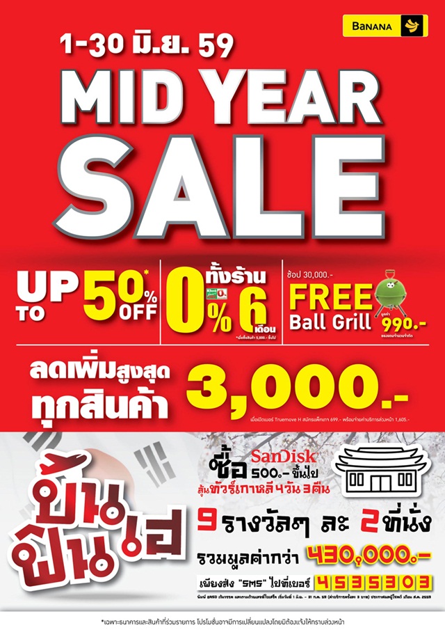 โปรแรงกลางปี Mid Year Sale ที่ร้านบานาน่าโมบาย ทุกสาขาทั่วประเทศ วันนี้ - 30 มิถุนายน 2559