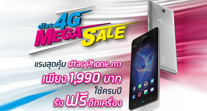 dtac 4G Mega Sale ออกโปรแรง dtac phone M1 ใช้ครบปี รับรุ่นใหม่ใช้ฟรีอีกเครื่อง