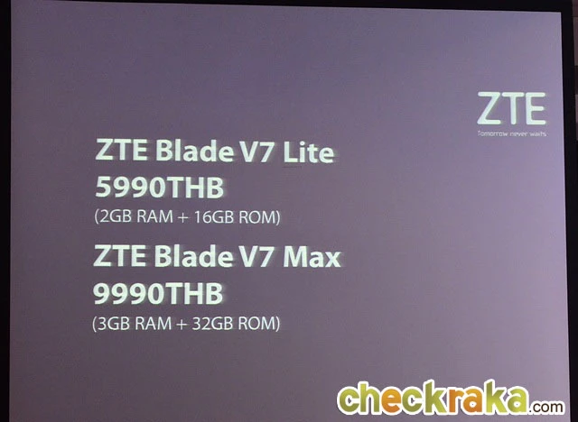ZTE หนึ่งในผู้ผลิตโทรศัพท์มือถือชั้นนำของโลก ประกาศเปิดตัวสมาร์ทโฟนซีรีส์เด่นของปี 59 "ZTE Blade V7 Series" นั่นก็คือ Blade V7 Lite และ Blade V7 Max สู่ตลาดประเทศไทย ต่อยอดความมุ่งมั่นของแซดทีอีในการนำเสนอสมาร์ทโฟนคุณภาพสูงราคาที่คุ้มค่าให้กับผู้ใช้สมาร์ทโฟนไทย