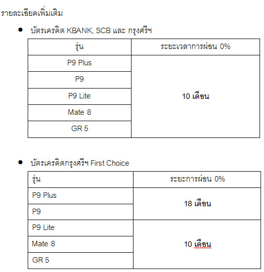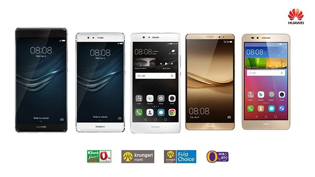 หัวเว่ย คอนซูมเมอร์ บิสสิเนส กรุ๊ป (ประเทศไทย) ผู้ผลิตแอนดรอยด์สมาร์ทโฟนอันดับ 2 ของโลก ขนทัพสมาร์ทโฟน Huawei P9 Plus / P9 / P9 Lite / Mate 8 และ GR5 มาให้ครอบครองกันแบบฟินๆ ไปเลย ด้วยโปรโมชั่นสุดพิเศษ ผ่อน 0% ทุกรุ่น นานสูงสุดถึง 18 เดือน ร่วมกับบัตรเครดิต วีซ่าและมาสเตอร์การ์ด ของธนาคารกสิกรไทย ธนาคารไทยพาณิชย์ ธนาคารกรุงศรีอยุธยา และบัตรกรุงศรี เฟิร์สช้อยส์
