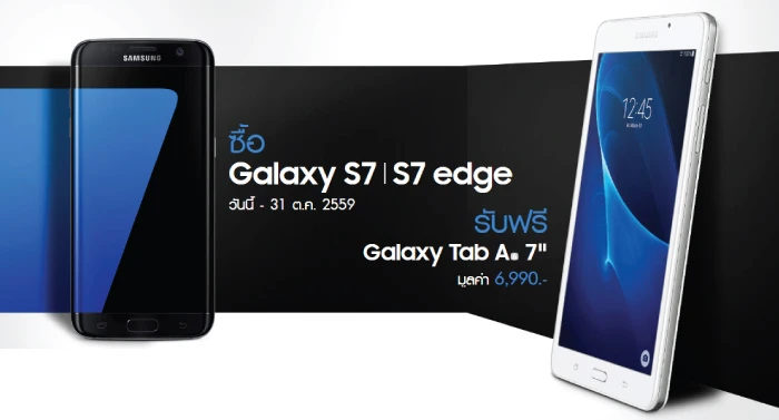 โปรโมชั่นแรงๆ จาก Samsung เมื่อซื้อ Samsung Galaxy S7 หรือ Galaxy S7 edge รับฟรีทันที Samsung Galaxy Tab A 7" มูลค่า 6,900 บาท วันนี้ - 31 ตุลาคม