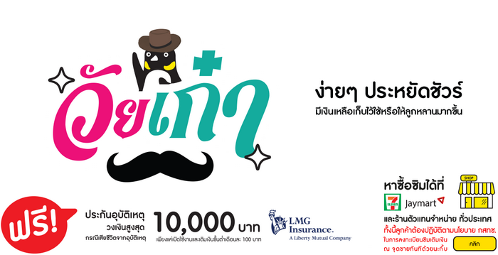 ซิมวัยเก๋า ค่าโทรถูกที่สุด ด้วยค่าโทรวินาทีละ 1 สตางค์ ตั้งแต่วินาทีแรก ทุกเครือข่าย และสามารถควบคุมค่าใช้จ่าย ด้วยค่าอินเทอร์เน็ตแบบจ่ายตามจริง 1 MB = 0.25 บาท แต่ไม่เกิน 300 บาท/เดือน โดยไม่ต้องสมัครโปรเสริม นอกจากนี้ยังมีเรื่องของประกันอุบัติเหตุ วงเงินสูงสุด 10,000 บาท กรณีเสียชีวิตจากอุบัติเหตุจาก LMG Insurance