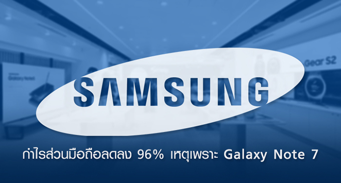 Samsung ได้ประกาศผลประกอบการไตรมาสที่สามปี 2016 กำไรในส่วนของธุรกิจโทรศัพท์มือถือลดลงถึง 96% เพราะปัญหาของ Samsung Galaxy Note 7 โดยทำไปได้เพียง 0.10 ล้านล้านวอน หรือ 87.8 ล้านเหรียญ คิดเป็นเงินไทย 3,160 ล้านบาท ซึ่งลดลงถึง 96% เมื่อเทียบกับช่วงเวลาเดียวกันของปีที่แล้ว แถมยังเป็นตัวเลขที่ต่ำที่สุดในรอบ 8 ปีของ Samsung อีกด้วย