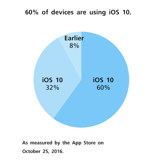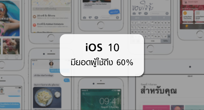 หลังจากการเปิดตัวสมาร์ทโฟน iPhone 7 และ 7 Plus พร้อมระบบปฏิบัติการใหม่ล่าสุดอย่าง iOS 10 มาได้สักระยะ ล่าสุดทาง Apple ยิ้มหน้าบานได้ออกมาเผยว่า ปัจจุบันนี้มีผู้ใช้งานระบบปฏิบัติการ iOS 10 มากถึง 60% ของอุปกรณ์ที่รองรับระบบปฏิบัติการนี้ ถือว่าเพิ่มมากขึ้นจากครั้งที่ผ่านมาถึง 6% เลยทีเดียว ซึ่งถือว่าเป็นเรื่องที่ดี