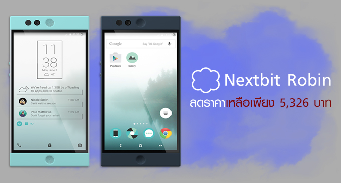 Nextbit Robin สมาร์ทโฟนแบรนด์ใหม่จากธุรกิจ Kickstarter ในสหรัฐอเมริกา โดยมีผู้นำเข้ามาทำตลาดในประเทศไทยอย่างเป็นทางการด้วยนะครับ ในราคา 12,900 บาท โดยสมาร์ทโฟนตัวนี้มาพร้อม เทคโนโลยี Cloud-First รุ่นแรกของโลก ซึ่งมีจุดเด่นในเรื่องของหน่วยความจำไม่มีวันเต็ม เพราะมีการบริหารหน่วยความจำบน Cloud แถมพื้นที่จัดเก็บข้อมูลบนคลาวด์มากถึง 100 GB ฟรี แถมล่าสุดยังเปิดให้ทดลองอัพเดท Android Nougat รุ่นทดสอบแล้วด้วย ถือว่าเป็นแบรนด์ที่มีความคิดสร้างสรรค์ ตัวเครื่องคุณภาพสูง และมีการอัพเดทหลังการขายที่ไว้วางใจได้