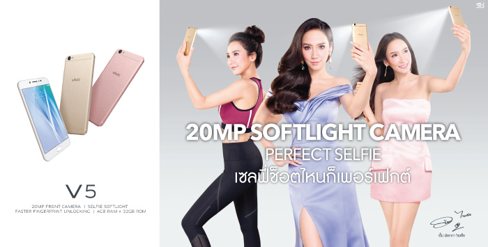 Vivo เปิดตัว Vivo V5 สมาร์ทโฟนกล้องหน้า 20MP พร้อมด้วยแบรนด์ แอมบาสเดอร์ "อั้ม พัชราภา"