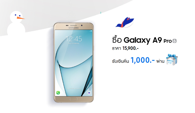 รับ Cash Back มูลค่า 1,000 บาท เมื่อซื้อ Samsung Galaxy A9 Pro