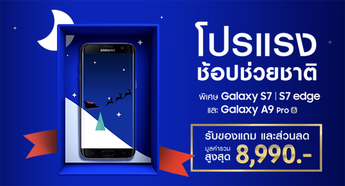 Samsung (ประเทศไทย) ขานรับนโยบาย "ช้อปช่วยชาติ" มอบสิทธิพิเศษสำหรับผู้ซื้อ Samsung Galaxy S7, S7 edge และ Galaxy A9 Pro พร้อมรับของแถม และส่วนลดสูงสุด 8,900 บาท วันนี้ - 3 มกราคม 2560
