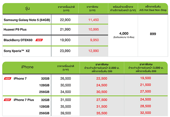 AIS Hot Deal ดีลสมาร์ทโฟนหลากรุ่น ลดค่าเครื่องสูงสุด 50% นำทัพด้วย BlackBerry DTEK60