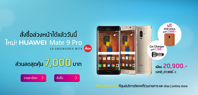 Huawei Mate 9 Pro เปิด Pre-Booking ได้แล้ววันนี้ พร้อมรายละเอียดโปรโมชั่นจาก 3 ค่ายใหญ่