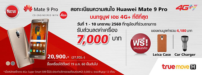 พิเศษ! รับส่วนลดค่าเครื่อง 7,000 บาท เมื่อชำระค่าบริการล่วงหน้า 3,000 บาท พร้อมสมัครแพ็กเกจ 4G+ Super Smart 599 ขึ้นไป รับฟรี ของแถมมูลค่ารวม 4,180 บาทเมื่อซื้อเครื่องพร้อมสมัครแพ็กเกจและชำระค่าบริการรายเดือนล่วงหน้าตามที่กำหนด ซื้อเครื่องได้ตั้งแต่วันที่ 19 ม.ค. 60 เป็นต้นไปสอบถามรายละเอียดเพิ่มเติมที่ทรูช้อปที่ร่วมรายการ