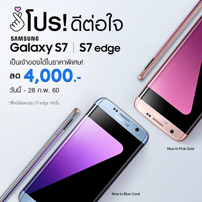 พิเศษ! Samsung Galaxy S7 และ Samsung Galaxy S7 edge ทุกสี ประกาศลดราคา 4,000 บาท ตั้งแต่วันนี้ - 28 กุมภาพันธ์ 2560 ที่ Samsung Brand Shop และเว็บไซต์ www.S-Estore.com