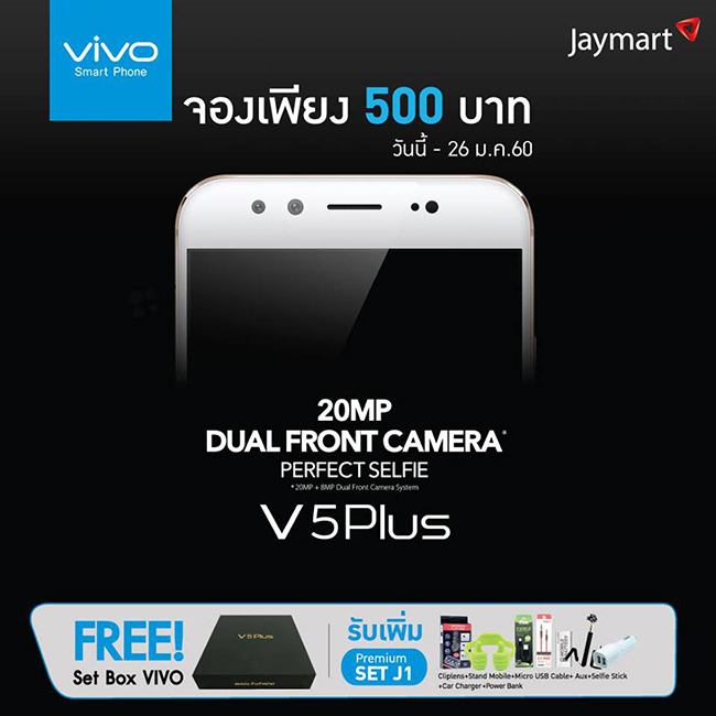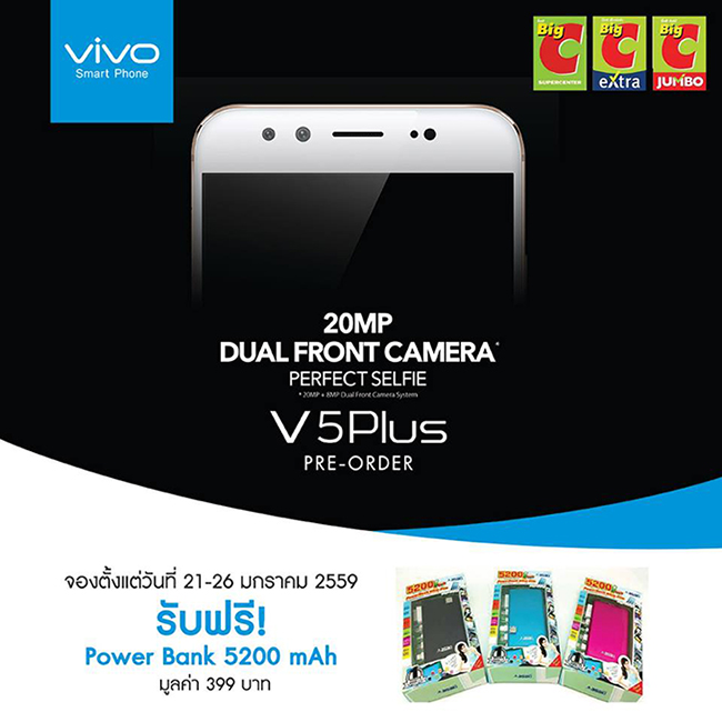 Vivo V5 Plus เปิดจองล่วงหน้าแล้ววันนี้ พร้อมของแถมแบบจุใจ ณ ตัวแทนจำหน่ายทั่วประเทศ