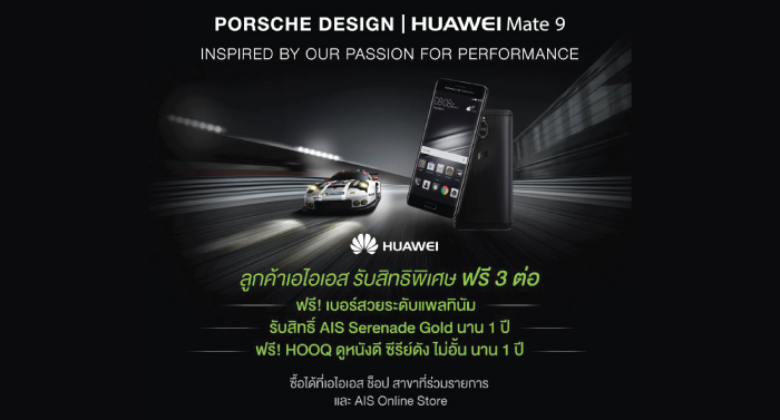 AIS จัดหนักเมื่อซื้อ Huawei Mate 9 Porsche Design รับสิทธิพิเศษ ฟรี 3 ต่อ