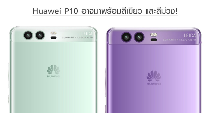 Huawei P10 สมาร์ทโฟนที่หลายๆ คนรอคอย จะเปิดตัวในเดือนหน้านี้แล้วนะครับที่งาน MWC 2017 ล่าสุดมีการเผยภาพของ Huawei P10 สีเขียว และสีม่วง ออกมา ดูสวยงามมากครับ โดยคาดกันว่าจะเป็นอีกสองสีที่เพิ่มเข้ามา นอกเหนือจากสีดำ ชมพู และทองที่ลือกันมาก่อนหน้านี้ และเปลี่ยนมาใช้วัสดุเป็นกระจกที่ฝาหลัง (แหม ฮิตกันจริงๆนะครับเนี่ย) แต่ยังไม่มีการยืนยันนะครับ ว่าจะมีออกมาจริงหรือเปล่า