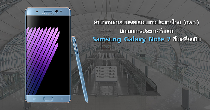 กพท. ยกเลิกการประกาศ "ห้ามนำ Samsung Galaxy Note 7 ขึ้นเครื่องบิน"