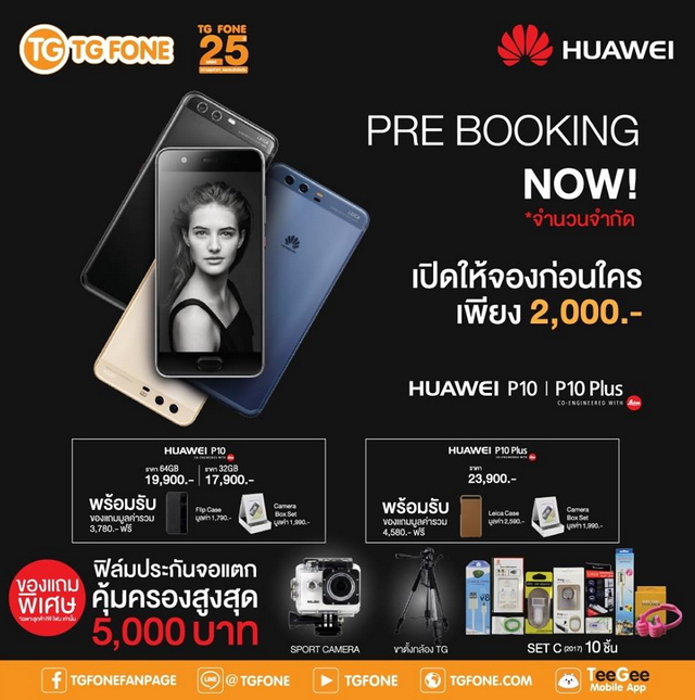 TG Fone เปิดจอง Huawei P10 และ P10 Plus มัดจำ 2,000 บาท พร้อมของแถมพิเศษมากมาย ตั้งแต่วันนี้ - 26 มี.ค. 60 ดูรายละเอียดเพิ่มเติม promotion-of-tg-fone