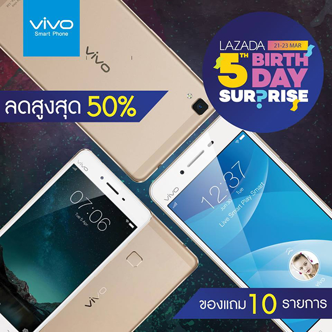Vivo จับมือกับ Lazada ร่วมแคมเปญใหญ่ "Birthday Surprise Campaign" ขนกองทัพทั้งรุ่นน้องใหม่ น้องเก่า มากมายมาจัดโปรโมชั่นพิเศษ ลดสูงสุดถึง 50% นำทีมโดย