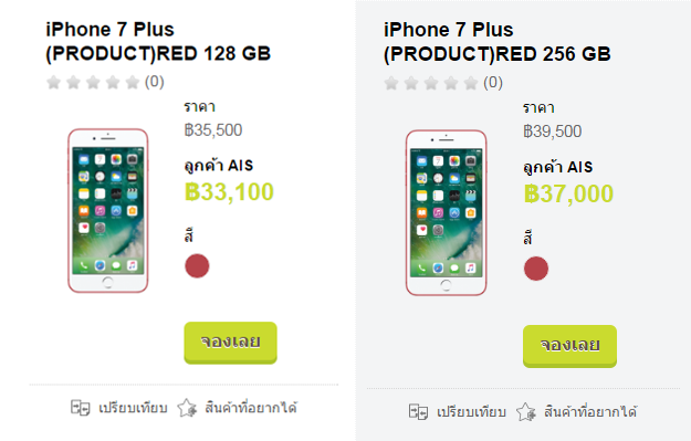 อัพเดท! ล่าสุด AIS Online Store เปิดให้สั่งจองล่วงหน้า iPhone 7 และ iPhone 7 Plus (PRODUCT)RED Special Edition ตั้งแต่เวลา 9.00 น. ของวันที่ 25 มีนาคม 2560 เป็นต้นไป และ สินค้าจะเริ่มจัดส่ง ตั้งแต่ วันที่ 31 มีนาคม