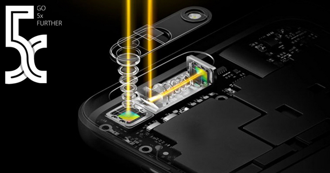 OPPO เป็นเจ้าแรกที่พัฒนาเทคโนโลยี 5X Dual Camera Zoom ได้สำเร็จ โดยได้รับแรงบรรดาลใจมาจากไอเดียกล้องส่องดูเหนือผิวน้ำของเรือดำน้ำ กล้องคู่ตัวนี้ได้มีการนำเอาความกว้างของเลนส์ถ่ายภาพระยะไกล (เลนส์เทเลโฟโต้) มาประยุกต์ใช้พร้อมกับโครงสร้างสไตล์เพอริสโคป (periscope) ด้วยการเปลี่ยนมุมของเลนส์เทเลโฟโต้ให้อยู่ในมุม 90 องศา จะช่วยให้ตัวเลนส์มีพื้นที่มากพอในการซูมให้ลึกขึ้น อีกทั้งตัวแท่งปริซึ่มสไตล์เพอริสโคป ได้ช่วยหักเหรับแสงที่เดินทางเข้ามาในมุมกล้อง 90 องศาอย่างพอดี แล้วทำการส่งภาพผ่านเลนส์เทเลโฟโต้ เมื่อผู้ใช้ทำการซูมเข้าไปยังสิ่งของสิ่งนั้น และมาพร้อม Optical Image Stabilization (OIS) ซึ่งทาง OPPO มาใช้กับเลนส์เทเลโฟโต้โดยตรง สามารถเพิ่มสมรรถนะกว่ารุ่นอื่นๆได้ถึง 40% ช่วยให้ภาพคมชัดแม้จะซูมสุด 5X ก็ตาม