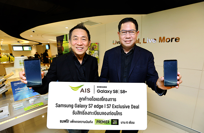 จัดเต็ม! สมการรอคอย เอไอเอส จับมือ ซัมซุง เปิดให้ลูกค้าที่เป็นเจ้าของ Samsung Galaxy S7 และ Samsung Galaxy S7 edge ในโครงการเอ็กซ์คลูซีฟดีล (ระหว่างวันที่ 18 มี.ค. - 30 เม.ย. 59) มาอัพเกรดเป็น Samsung Galaxy S8 และ Samsung Galaxy S8+ ได้ในราคาพิเศษ