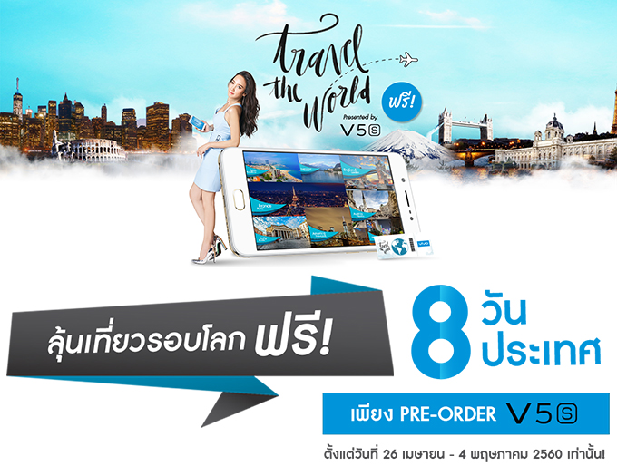 Vivo มอบของขวัญสุดพิเศษ Pre-oder สมาร์ทโฟน Vivo V5s ลุ้นเที่ยวรอบโลก ฟรี! 8 วัน 8 ประเทศ