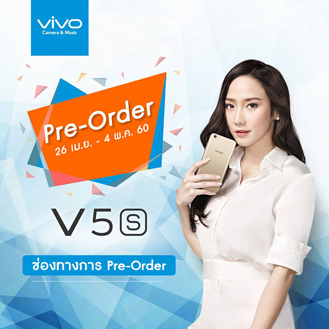 Pre-Order สมาร์ทโฟน Vivo V5s วันนี้! รับทันที ประกันสุดคุ้ม / VIP CARD และเปลี่ยนฟิล์มกระจกฟรีไม่จำกัด พร้อมลุ้นเที่ยวรอบโลกฟรี 8 วัน 8 ประเทศ ในกิจกรรม Around the world ตั้งแต่วันที่ 26 เมษายน - 4 พฤษภาคม 2560