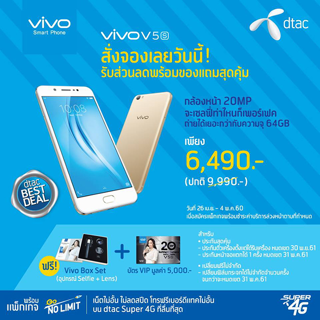 รวมโปรโมชั่นเด็ด Pre-oder สมาร์ทโฟนมาแรง Vivo V5s ครบทุกเจ้า!
