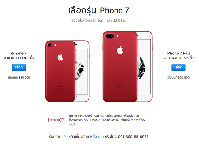 ระหว่างรอ iPhone รุ่นใหม่ ใครที่อดใจไม่ไหว iPhone 7 และ iPhone 7 Plus ก็ยังคงน่าสนใจอยุ่นะครับ ล่าสุดมีสีแดง (PRODUCT)RED Special Edition ออกมาวางจำหน่ายแล้วด้วยนะครับ ได้ทั้งสมาร์ทโฟนสุดสวย แถมยังได้ทำบุญให้กองทุนโลก เพื่อต่อต้านโรคเอดส์อีกด้วย