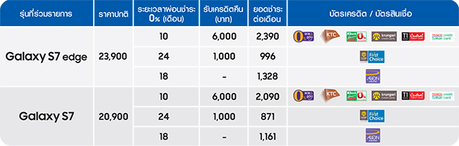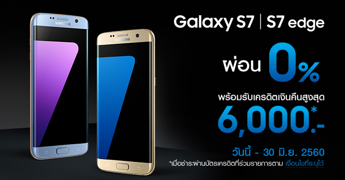 ซื้อ Samsung Galaxy S7 และ S7 edge วันนี้ ผ่อนสบาย 0% พร้อมรับเครดิตเงินคืนสูงสุด 6,000 บาท
