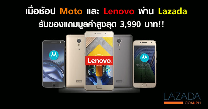 เมื่อช้อป Moto และ Lenovo ผ่าน Lazada รับของแถมมูลค่าสูงสุด 3,990 บาท!!