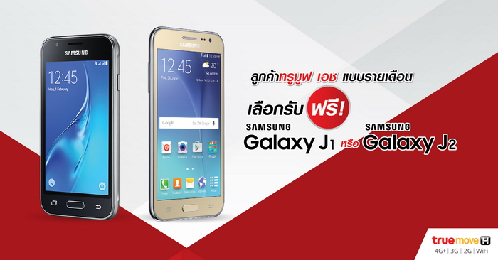 คุ้มเบอร์สุด! รับ Samsung Galaxy J1 หรือ Galaxy J2 ฟรี เพียงสมัครแพ็กเกจที่ร่วมรายการ กับทรูมูฟ เอช