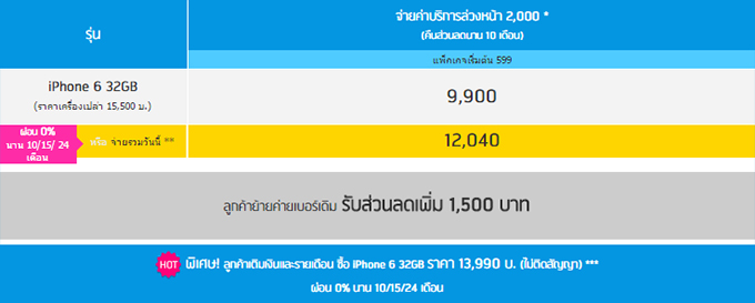 *** รายการส่งเสริมการขายนี้ไม่สามารถใช้ร่วมกับส่วนลดย้ายค่ายเบอร์เดิม 1,500 บาท