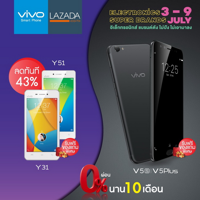 Vivo ร่วมมือกับ Lazada ในแคมเปญ "Electronics Super Brands อิเล็กทรอนิกส์ แบรนด์ดัง ไม่ปัง ไม่เอามาลง" นำสมาร์ทโฟนทั้งรุ่นเก่าและรุ่นใหม่มามอบโปรโมชั่นสุดพิเศษ