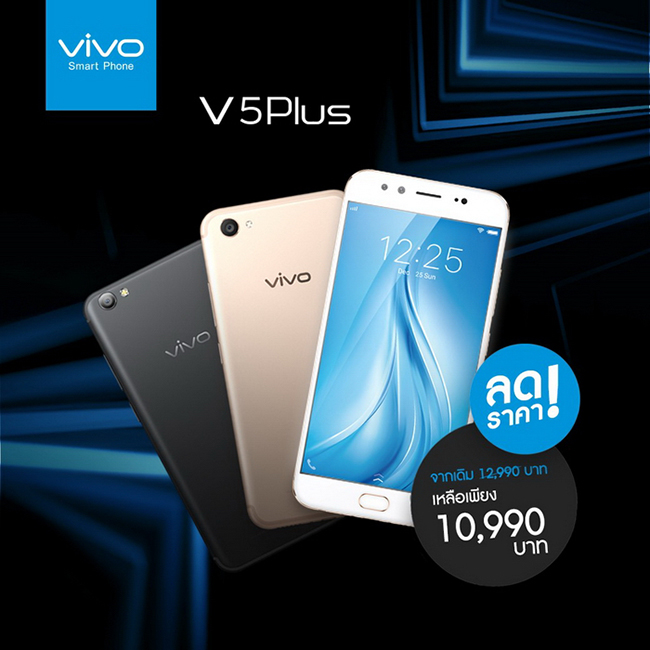 Vivo V5 Plus สมาร์ทโฟนกล้องหน้าคู่ ลดราคาชวนตะลึง เหลือเพียง 10,990 บาทเท่านั้น!