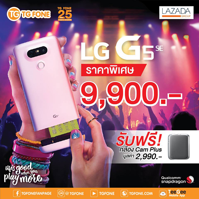 ห้ามพลาด! LG G5 SE เพียง 9,990.- ฟรี! กล้อง Cam Plus เฉพาะลูกค้า TG FONE และ Lazada เท่านั้น