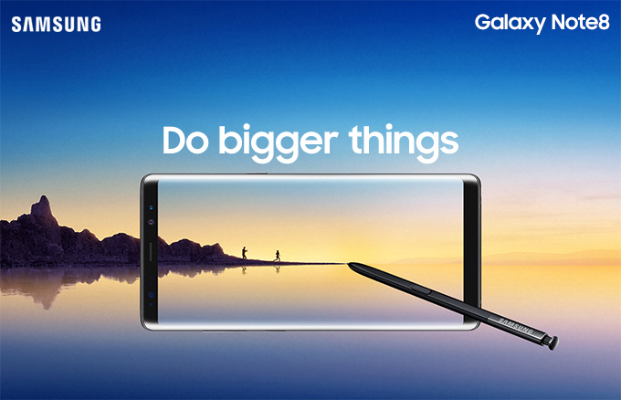 ซัมซุง เปิดตัว "ซัมซุง กาแลคซี่ โน้ต 8" (Samsung Galaxy Note 8) มิติใหม่แห่งสมาร์ทโฟนรุ่นเรือธงในซีรี่ย์โน้ตที่ดีที่สุดที่เคยมีมา ภายใต้แนวคิด "Do Bigger Things" ตอบโจทย์ผู้บริโภคที่ต้องการสร้างสรรค์สิ่งใหม่ๆ ให้ก้าวไกลกว่าที่ใจคิด โดยกาแลคซี่ โน้ต 8 มาพร้อมปากกาอัจฉริยะ S Pen ที่ช่วยยกระดับการสื่อสารในแบบของตัวคุณเองได้ดียิ่งขึ้น ยิ่งไปกว่านั้น ยังพกพาขีดสุดแห่งเทคโนโลยีด้วยกล้องคู่ Dual Camera ที่ดีที่สุดบนสมาร์ทโฟนของซัมซุง สำหรับการเก็บทุกโมเม้นท์สำคัญอันน่าจดจำ นอกจากนี้ผู้ใช้งานยังสัมผัสประสบการณ์ที่เปิดกว้างยิ่งขึ้นกับจอภาพไร้กรอบในสไตล์ "อินฟินิตี้ ดิสเพลย์" (Infinity Display) ที่สามารถจับได้ถนัดกระชับด้วยมือข้างเดียว ซัมซุง กาแลคซี่ โน้ต 8 ตอบสนองไลฟ์สไตล์ของผู้บริโภคยุคใหม่ที่มีชีวิตผูกติดกับเทคโนโลยีอย่างขาดไม่ได้