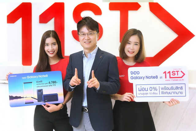 11street เปิดจอง Samsung Galaxy Note 8 อย่างเป็นทางการแล้วบนออนไลน์มาร์เก็ตเพลส สะดวกและประหยัดเวลามากขึ้นไม่ต้องยืนรอต่อคิว เพียงคลิกจองผ่านเว็บ 11street ตั้งแต่วันนี้ - 17 กันยายน 2560 พร้อมรับสิทธิพิเศษมากมายจาก 11street ผ่อน 0% สูงสุด 10 เดือน เมื่อจ่ายด้วยบัตรเครดิตที่เข้าร่วมรายการ หรือชำระเต็มจำนวนผ่านบัตรที่ร่วมรายการ แล้วรับเครดิตเงินคืนสูงสุด 15% และยังสามารถเลือกชำระเงินปลายทางเมื่อรับสินค้าได้อีกด้วย